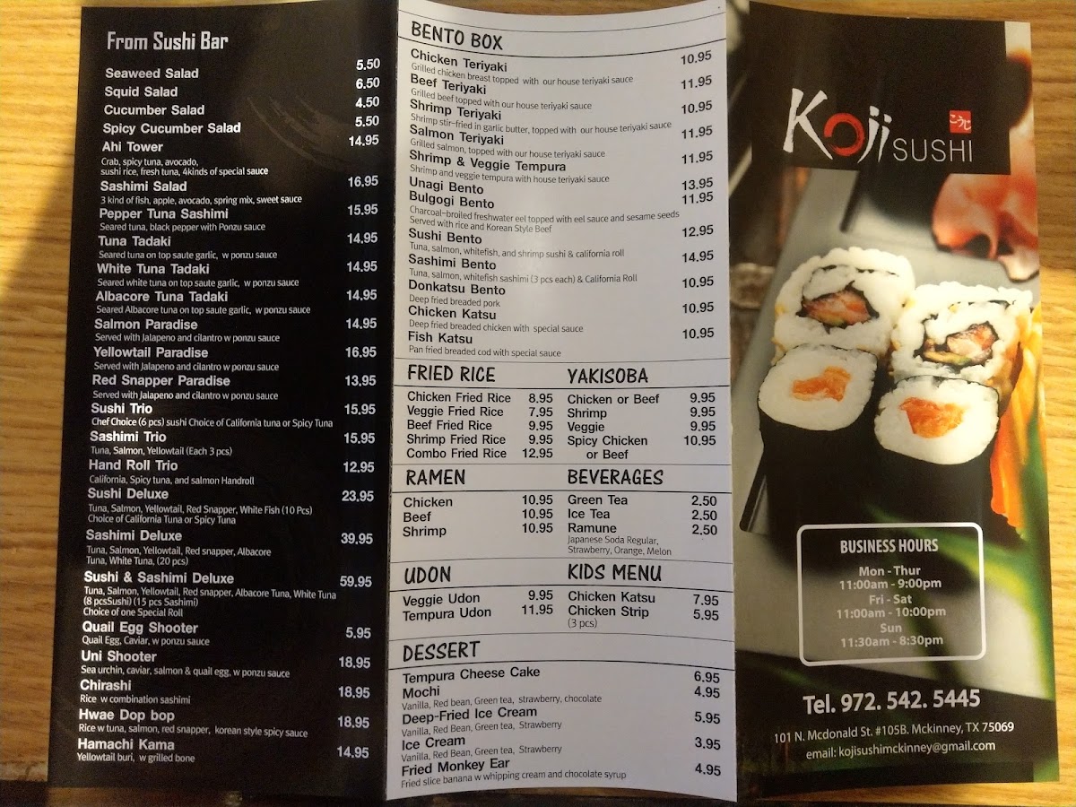 Welcome to Koji Sushi, your go-to destination for an authentic Japanese culinary experience tucked away at 101 N McDonald St, McKinney, TX. This charming restaurant beautifully blends traditional Japanese flavors with a comfortable, family-friendly atmosphere. A feast for the senses awaits, making every visit not just a meal, but a delightful dining adventure.